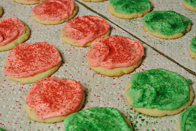 they're pretty simple and easy to throw together and they look so festive with their red and green frosting and sprinkles, that if you need just one more cookie recipe, you know, for the jolly fat guy in the big red suit....you should make these.